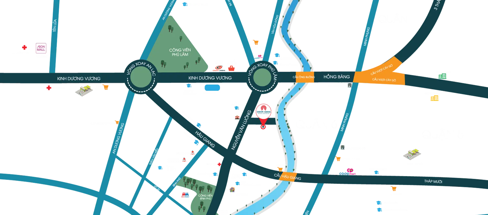 Đặc biệt, dự án kết nối về trung tâm thông qua các nút giao thông quan trọng như: vòng xoay Phú Lâm, Nguyễn Văn Luông, Hậu Giang.